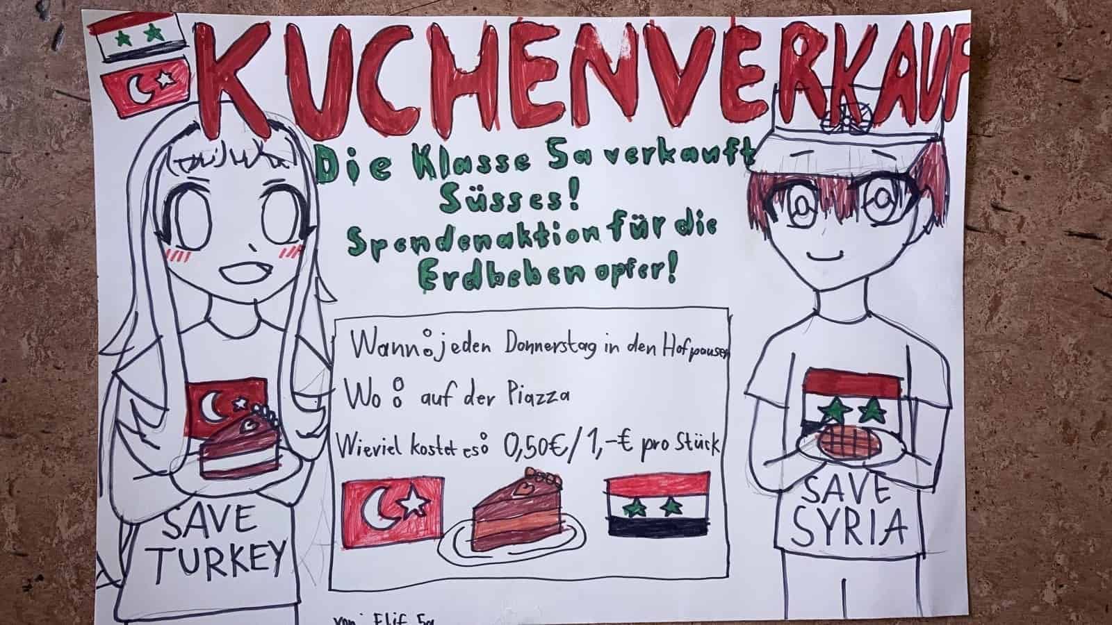 Die Klasse 5a hat mit ihrem Kuchenverkauf weitere 332€ für die Spendenaktion zugunsten der Erdbebenopfer gesammelt. Danke❤️❤️❤️