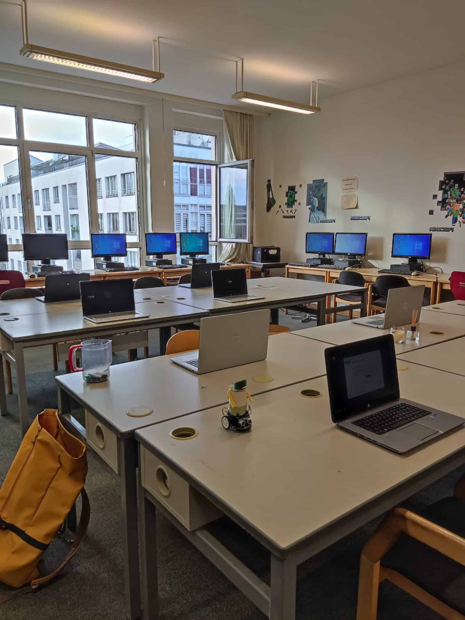 Ein besonderes Highlight unserer Schule ist der gut ausgestattete Computerraum. Hier können die Kinder an modernen Desktop-PCs sowie Laptops arbeiten. Insgesamt besitzt die Schule 30 Laptops, die in zwei praktischen Aufladewagen untergebracht sind. Diese Wagen ermöglichen den flexiblen Einsatz der Geräte in verschiedenen Klassenräumen.