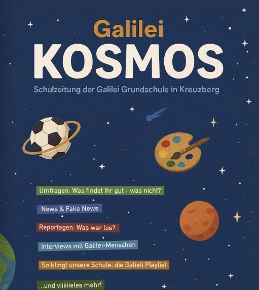 In unserer Schüler:innen-Zeitung Galilei-Kosmos berichten wir über alles, was unser Schulleben bewegt – von spannenden Projekten und aktuellen Ereignissen bis hin zu Interviews, Meinungsbeiträgen und kreativen Texten. Hier schreiben Schüler:innen für Schüler:innen – kritisch, neugierig und mit Herz für unsere Schulgemeinschaft.