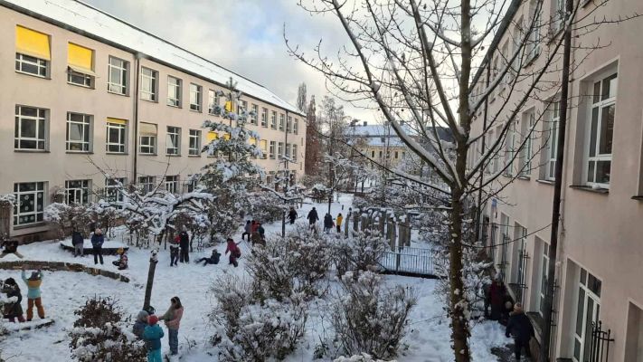 Endlich ist er da! Der erste richtige Schnee hat unser Schulgelände in eine glitzernde Winterlandschaft verwandelt.